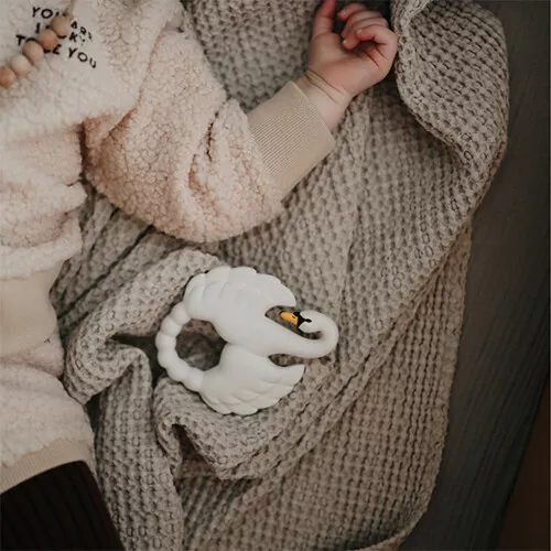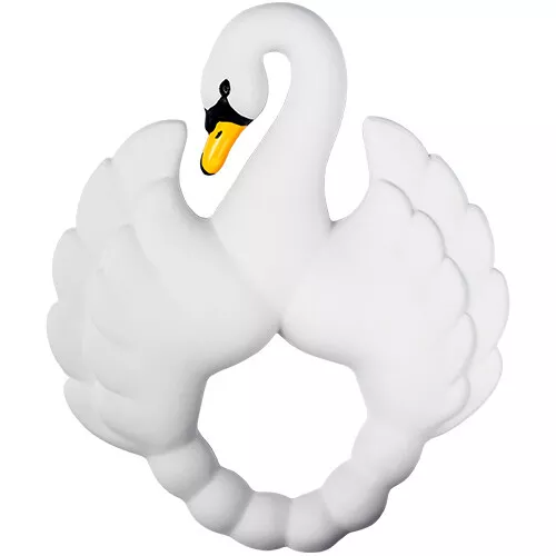 De elegante zwaan van deze bijtring ‘Teether Swan – White’ van het Deense merk Natruba masseert het tandvlees en verlicht de pijn bij het doorkomen van de tandjes. Het babyspeelgoed is eenvoudig vast te pakken door kleine handjes en is voorzien van verschillende diktes en reliëf.