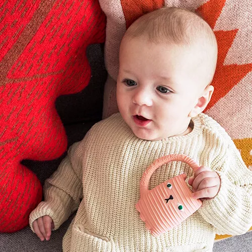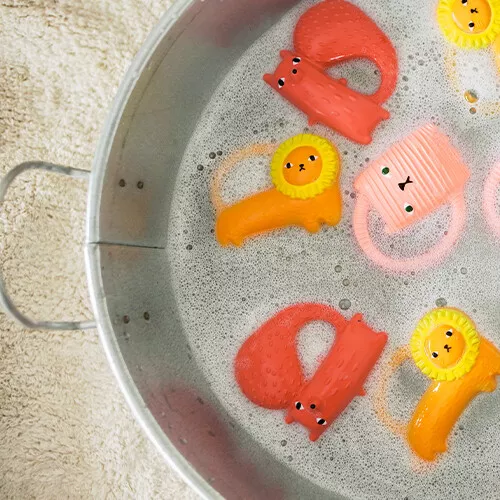 De handgemaakte bijtring met rondingen en reliëf geeft verlichting bij doorkomende tandjes én zorgt voor pret tijdens het badderen. Omdat er geen luchtgaatje in het badspeelgoed zit, komen er geen water- en zeepresten in.