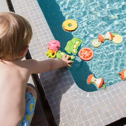 – Na gebruik het badspeelgoed afspoelen en met een vochtige doek schoonvegen.