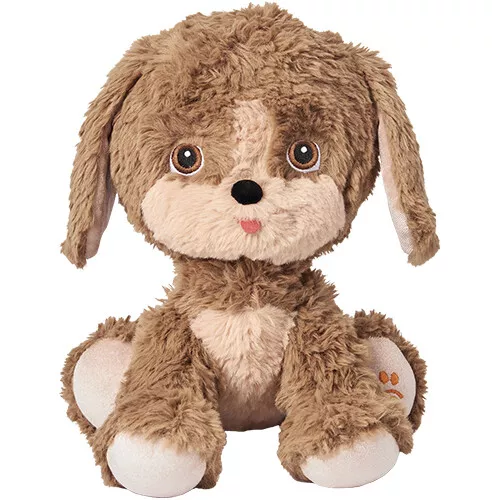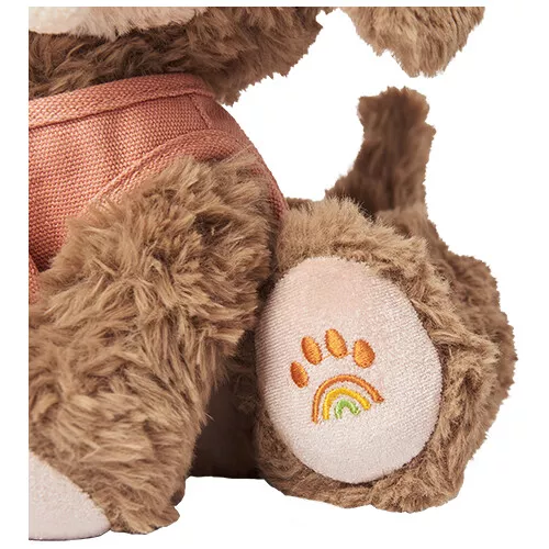 De knuffelhond is volledig beweegbaar. Zij kan staan, liggen of zitten. Haar grote kop kan 360 graden draaien en heeft een geborduurde, lieve hondensnoet. Op haar linkerachterpoot staat een regenboog geborduurd.Â