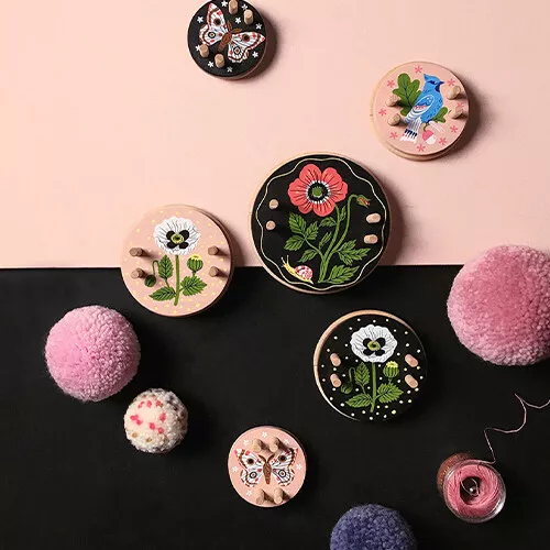 De pompomtool versierd met prachtige beschilderingen van Oana Befort. Mooi knutselgereedschap voor beginners of echte knutselexperts.