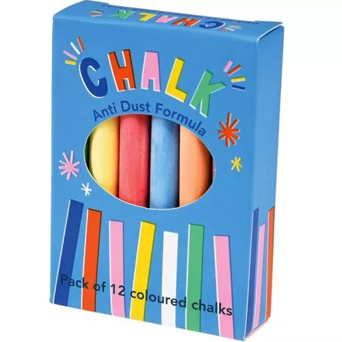 Een setje met 12 pastelkleurige schoolbordkrijtjes van het merk Rex London. De krijtjes zijn verpakt in een leuke retro verpakking.