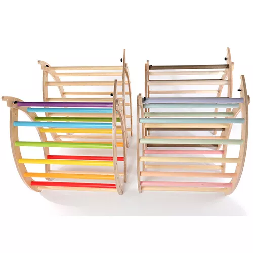 Heerlijk klimmen en klauteren binnenshuis met het klimtoestel ‘Finn – Rainbow’ van het Engelse merk Sawdust & Rainbows. Met het houten speeltoestel leren kinderen veilig klimmen en balanceren. Het open-ended speelgoed biedt veel spelmogelijkheden, behalve klauteren.