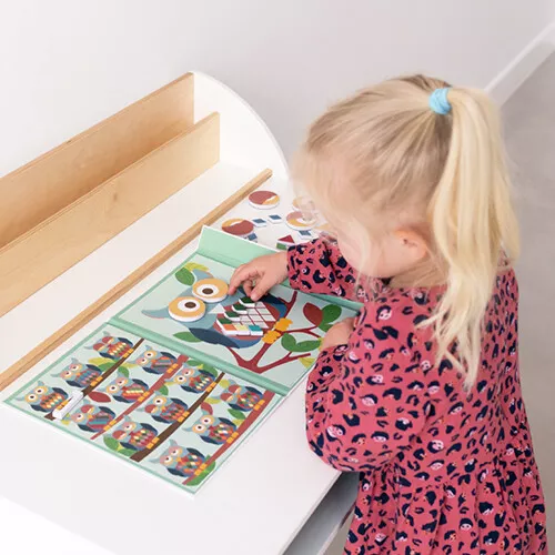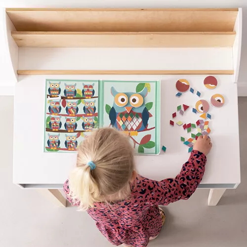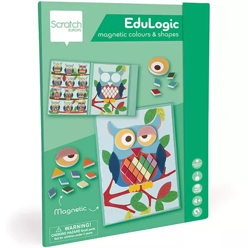 Creëer keer op keer andere snoetjes en patronen op meneer Uil in deze magnetische speelset ‘EduLogic Magnetic Colours & Shapes Owl’ van het Belgische merk Scratch Europe.
