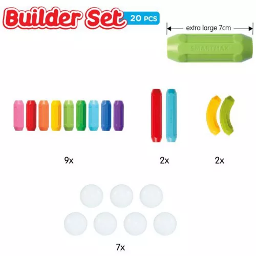 Ontdek de magie van het magnetisme en bouw allerlei vormen met ‘My First Builder Set’ van het merk SmartMax. Het open-ended magnetische speelgoed nodigt op een veilige manier uit tot fantasierijke constructies: hoog, laag, breed of smal in allerlei kleuren. Het stimuleert motorische vaardigheden en de hand-oogcoördinatie en creativiteit.