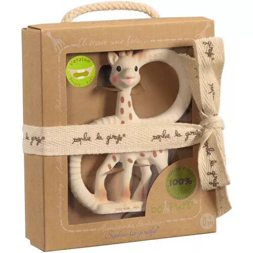Deze dubbele bijtring Sophie de Giraf uit de serie So Pure van het Franse merk Vulli is al geschikt voor pasgeboren baby’s. Hij heeft verschillende plekjes waarop gekauwd kan worden, zoals de oortjes en het kopje. Door de twee verschillende reliëfs – bolletjes en streepjes – op de twee ringen, kan de baby de pijn van de doorbrekende tandjes verzachten. Ideaal om op te kauwen en  om het tandvlees verlichting te geven!