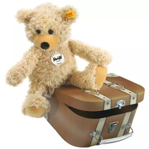 Charly is een klassieke beige teddybeer in een koffertje van Steiff. Deze charmante beer heeft een lief gezicht, een met de hand geborduurde zwarte neus en tweekleurige ogen. De knuffelbeer is gemaakt van zacht geweven pluche dat super zacht en natuurlijk aanvoelt. De knuffel is opgevuld met synthetisch materiaal. Charly is geschikt voor alle leeftijden.