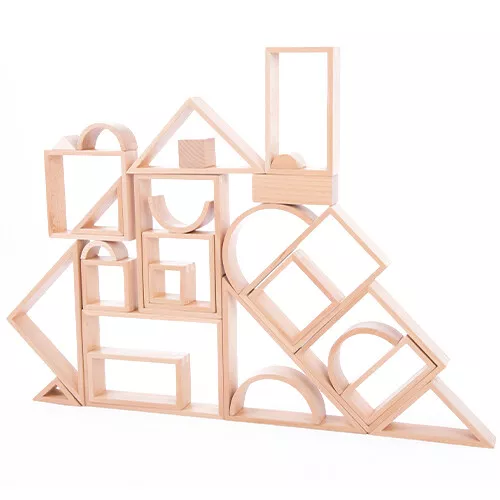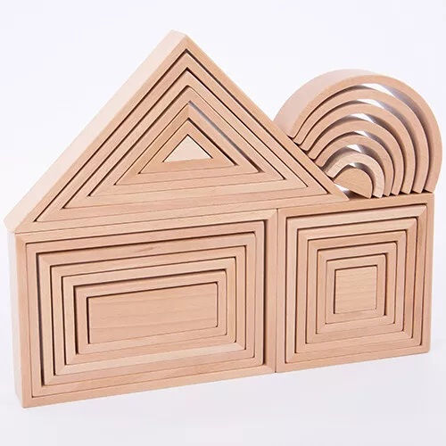 Combineer de stapelbogen met de andere meetkundige stapelvormen uit de Wooden Architect serie van Tickit.