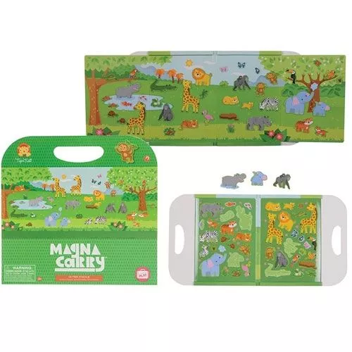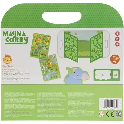 Vouw het magneetboek open en beschouw de oneindige grasvlaktes van de savanne. Met deze creatieve speelset ‘In the jungle’ uit de serie Magna Carry van het Australische merk Tiger Tribe kunnen kinderen hun eigen avontuurlijke verhaal creëren met al hun favoriete dieren uit de jungle.