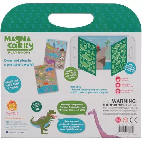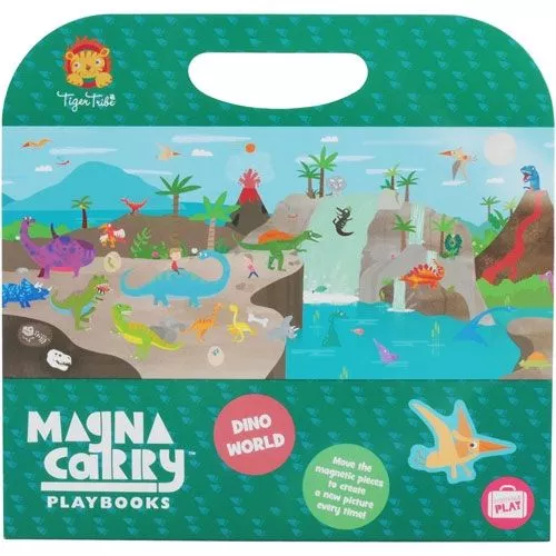 Vouw het magneetboek open en beschouw een prehistorische wereld vol dino’s! Met deze creatieve speelset ‘Dino World’ uit de serie Magna Carry van het Australische merk Tiger Tribe kunnen kinderen hun eigen avontuurlijke verhaal creëren met al hun favoriete dinosaurussen.