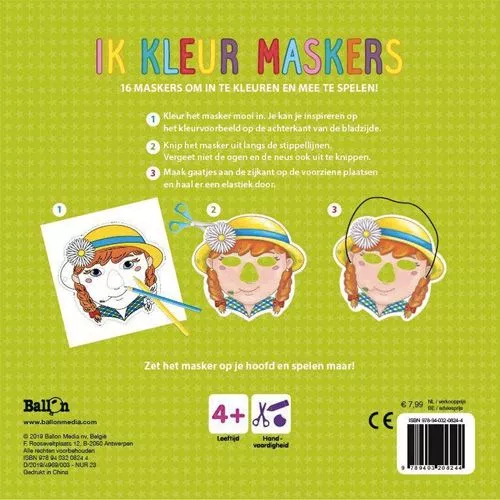 ‘Ik kleur maskers’ is een ideaal knutselboek voor verjaardagsfeestjes en verkleedpartijtjes. Voor al wie graag eens een stoere piraat, een gekke aap, een elegante prinses of een gevaarlijke haai wil zijn. Kinderen kleuren de maskers in, knippen ze uit en zetten ze op hun hoofd. Zo is elk feestje helemaal geslaagd!