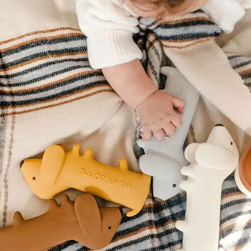 Het bad- en bijtspeelgoed van We Are Gommu wordt groen geproduceerd en met de hand gemaakt en beschilderd. Hierdoor is elk speeltje uniek en kunnen ze kleine imperfecties hebben.